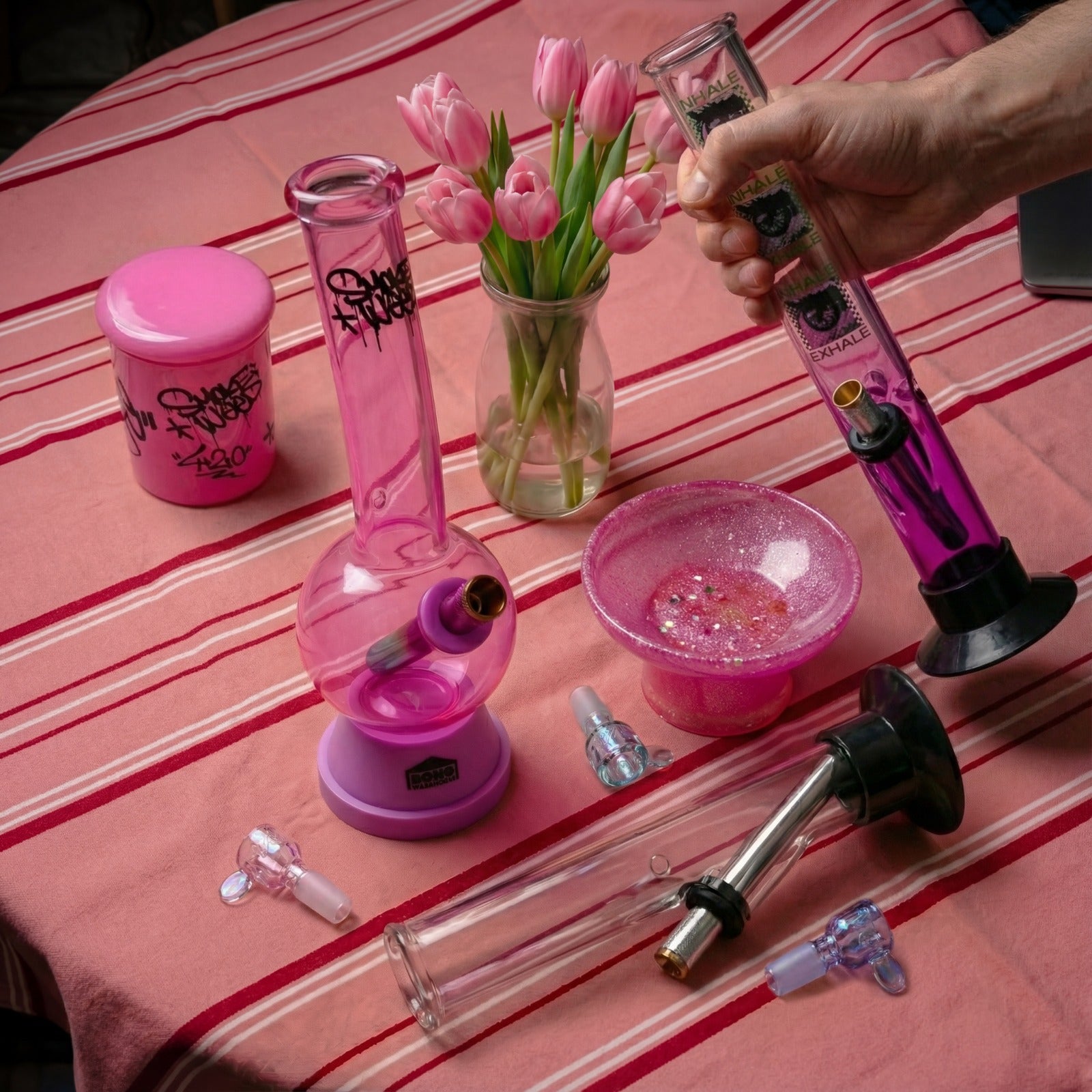Explore our selection of glass bongs, bubblers, gripper bongs, and smoking accessories like downstems, ash catchers, and cone pieces.